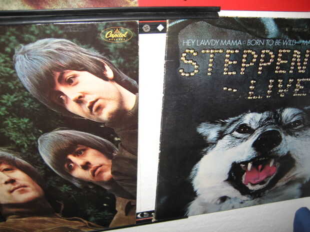 , colgué la primera capa de ajuste con un nivel en el uso superior sobre pieza 5-6 tornillos de la pared a lo largo de 6'. Después de eso, tomó 3 de mis discos y empujó una en al final, el centro y el extremo de la pieza de moldura. Entonces, tomó el pedazo siguiente de recorte y pegado en el la parte inferior de los registros y se atornilla en. Lo hice para medir con precisión el espacio necesario entre cada capa de adornos para colgar de los registros. Repetí este proceso para cada fila de los registros que quería.