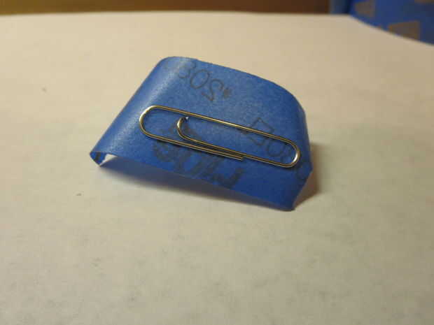 La cinta se va a sostener temporalmente la base a la parte posterior de la imagen. Empujar el punto intermedio de la cinta del lado pegajoso.