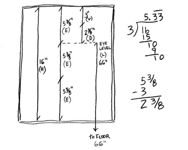 Mide hacia abajo desde la parte superior del marco, (E) va a terminan siendo a nivel de los ojos (L o 66"), dos terceras partes del marco.