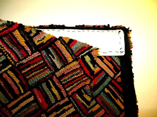 - Con su aguja de hilo y pesados de alfombra, mano coser la cinta a través de la alfombra. Probablemente puede hacerlo de manera que el hilo en el frente de la alfombra se oculta entre los mechones. Pero en cualquier caso, ten en cuenta que cada una de estas puntadas es el eslabón más débil entre el sistema de suspensión y la alfombra sí mismo. Cuando en la pared, la alfombra será colgar de estas puntadas y nada más, así que más de ellos tienes más uniformemente el peso de la alfombra se distribuirán a través de ellas. Un paso a tener mucho cuidado con if su alfombra es frágil en todos!