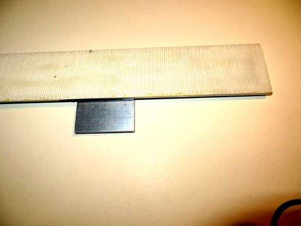 - Coloque el lado del gancho cinta hacia abajo en algo desechable e impermeable y peso cada extremo hacia abajo con algo por lo que permanece plana.