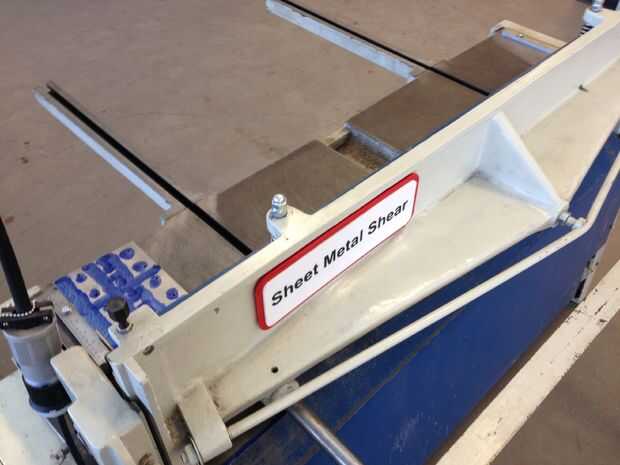La cizalla de metal de hoja en TechShop es el ayuno una forma precisa para cortar nuestras piezas a su tamaño total. Todavía tenemos algunos cortes más para uno de los tipos de soporte.