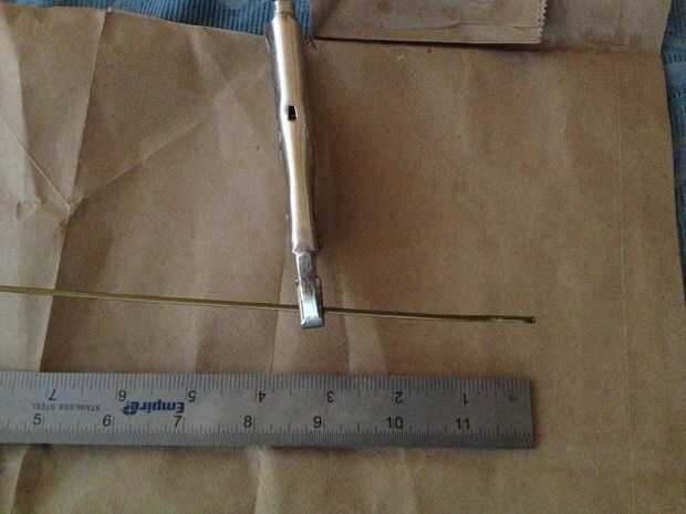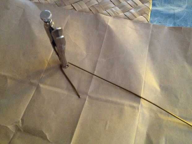 Será el gancho que suspende la suspensión de la canaleta. Abrazadera de su vice apretones de 3 pulgadas desde el extremo del alambre. Doble el alambre a ambos lados de los alicates, creando un ángulo de aproximadamente 45 grados. Asegúrese de que hay un aproximadamente 1/2 espacio entre los 2 lados. Esto tendrá en cuenta el ancho del lado de la cuneta.