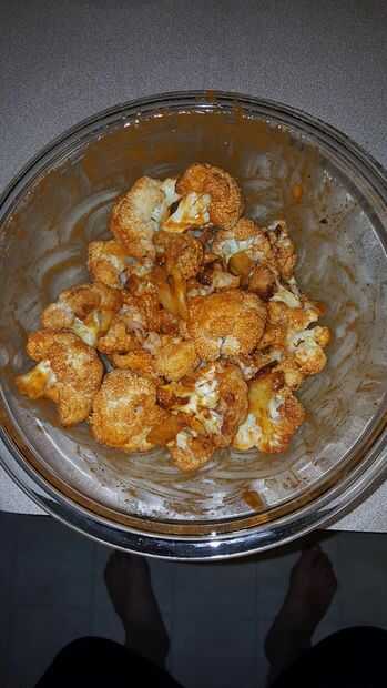 PALEO COLIFLOR TOTS1/2 coliflor grande1 cucharada de aceite de coco/mantequilla/mantequilla de búfalo2 huevos4 cucharadita de harina de coco (revolver la harina con un tenedor, luego medir)1/4 cucharadita de sal de mar1/2 cucharadita de mezcla de con