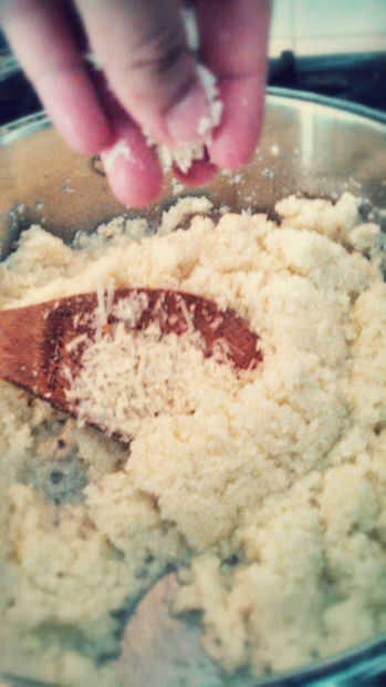 pizza libre de Gluten de coliflorPaso 1: ingredientes 1 cabeza de coliflor (mediumish)1 huevo1/4 taza de queso parmesano1/4 taza de queso mozzarella (o mezcla de Italiano)1/2 cebolla2-3 dientes de ajo5 hojas albahaca fresca (o 1/4 cucharadita seco al