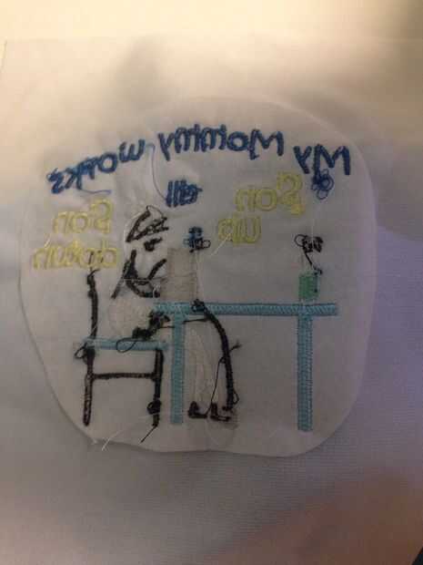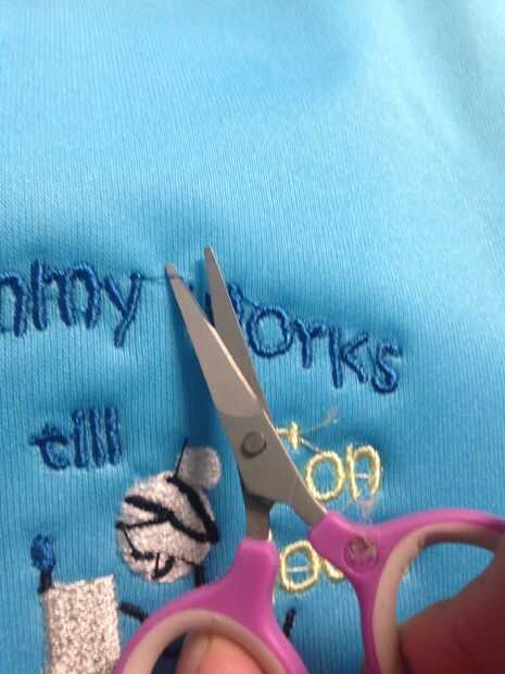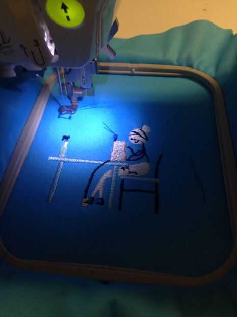 Haga clic en el cuadro en su lugar en el equipo y comenzar a bordar con el hilo de poliéster. Cambio de colores y siguiendo su patrón de bordado como vas. Cuando corte acabado tu salto puntadas y limpiar los restantes hilos.