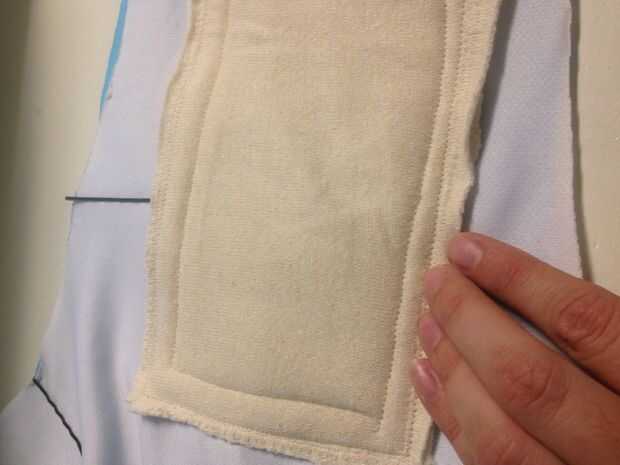 Coser todas las capas absorbentes juntos y luego colocar sobre la capa de tela seca de estancia (que se corta a la forma de su patrón). Usar camiseta deportiva de drenaje como mi tela seca de estancia porque es una opción confortable ajuste para su poco uno. Usar una puntada en zigzag y puntada de la parte superior de la misma (que será el bolsillo) para que no debilite más adelante después del lavado. Después de eso luego cose el inserto absorbente al revés de tu tela seca de estancia.