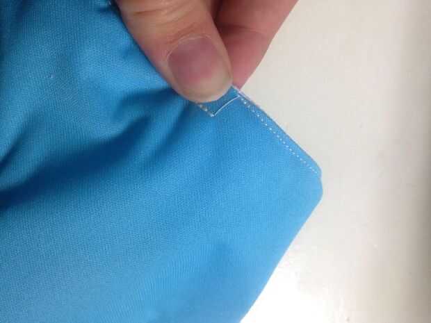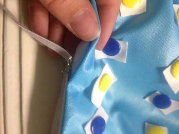 Ahora girar su pañal hacia fuera a través de la abertura de la cavidad. Después de hacer girar hacia fuera de usted hará la costura superior. Empiece en el borde de su elástica y su manera alrededor. Cuando llego al punto donde voy a empezar mi elásticos de la pierna que i volver puntada fin y saltan sobre una media pulgada y empezar a coser otra vez. Creando una cubierta elástica de pierna y espalda puntada donde planea terminar el elástico y saltar sobre su tapa costura borde. Repetir este proceso en el otro lado.