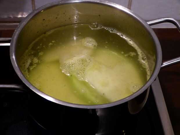 cocinar las rodajas en caldo de verduras para acerca de 5 minutos