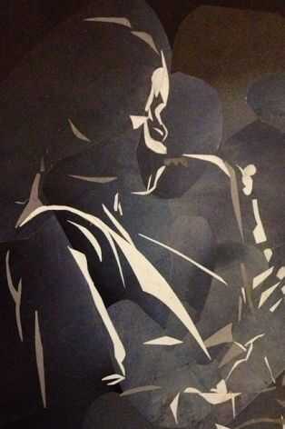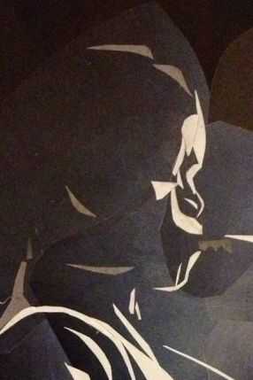 De espacio negativo collage, pongo el esquema dibujó al principio a un lado y utilizado como una fuente de referencia cuando se añade la luz. Me sacó varias tonalidades de grises de blancos, blanco roto y luz y comencé a cortar las secciones que se asemejó a luz reflejada golpear el objeto en la imagen original. Luego los pegué sobre el fondo más oscuro. A veces, necesitaba blancos puro capa sobre grises ligeros y de blancos muestran sombras de contraste en la luz. Seguirá aplicando las secciones de luz reflejada hasta que la imagen se manifiesta sobre el fondo.