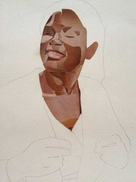 Para los cuadros que yo quería tener profundidad, sutileza y colores, generalmente comienzan identificando un color complementario a la imagen y establecen una base capa de ese color. Cortar estas secciones para adaptarse a los contornos de cada sección. Para los retratos, busco similares tonos de piel. Para los animales, busqué un trasfondo (como los verdes y azules en la tortuga de mar).