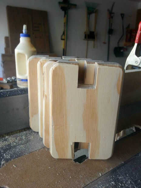 3. ahora con 4 de lo 3 "X 24" tiras cortar un dado de 3/4" centrado en 1 extremo a una profundidad de 1".