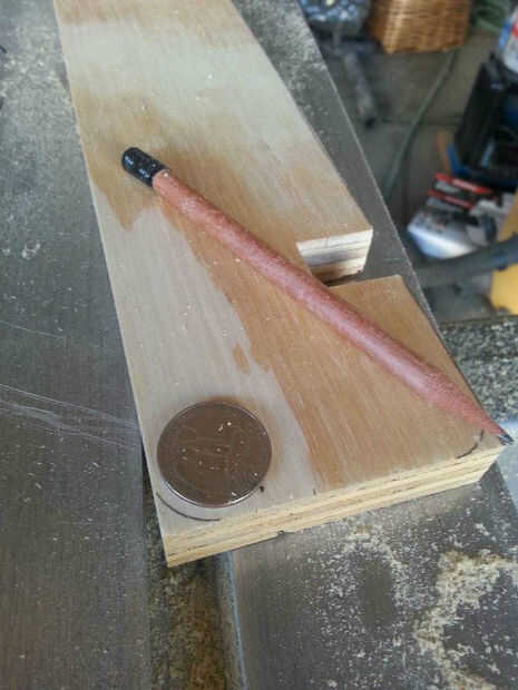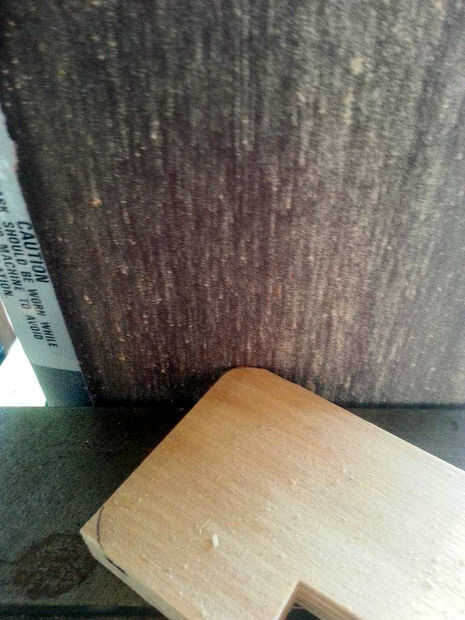 7. marcado cada esquina de todas las tablas con un cuarto y luego enarenada apagado estos rincones con una lijadora de banda.