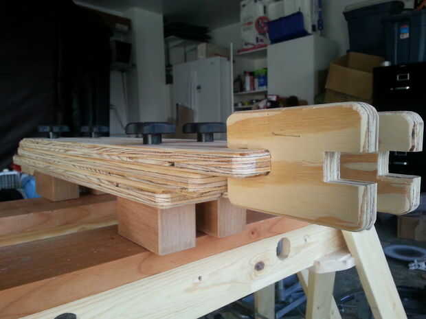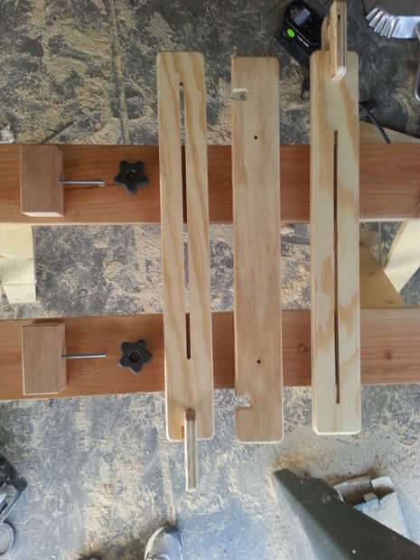 Hice estas bandas variable, vertical opcionales ya que hay veces cuando quieren o necesitan mayor altura para diversos proyectos o apoyo. Se podrían utilizar para apoyar tablas largas cuando ripeo en una mesa vio levantar una mesa de fresadora, una mesa o Banco improvisado mayor y salida de soportes para una sierra para cortar ingletes. Suben de 5 5/8" hasta un máximo de 22 1/2" encima del caballete.