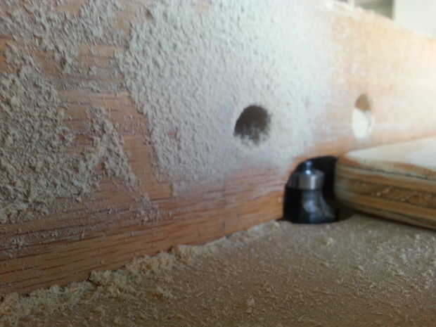 6. el corte de la ranura a través de las 4 piezas verticales. He utilizado un router equipado con un 1/4" bits que se centraba en las juntas. y detuve en la parte inferior de la Junta en 1 7/8" y en la parte superior (extremo de la tabla que tiene el dado) en 4 7/8".