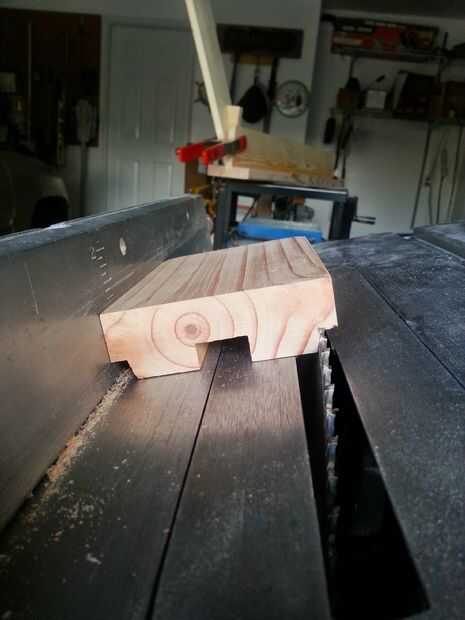 4. cortar parte de la 2 "x 4" a 36". Plano el 2 "x 4" con un grosor de 1". Luego lo corte a un ancho de 3 3/8".