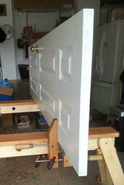 Taladré un agujero en cada una de las piernas que se centra y 10" de la parte inferior. Estos agujeros se utilizará para los bloques de Add-on para apoyar, cortar o trabajar en proyectos en posición vertical. es decir, puertas o madera contrachapada.