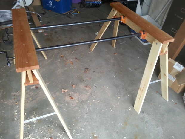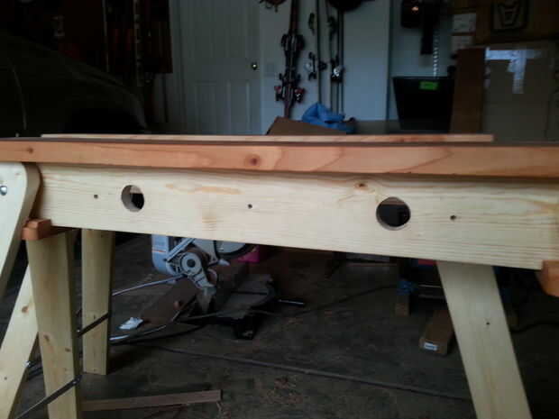 Perforé 2-1 1/2" agujeros de centrado en cada viga de 11" en la final. Esto es que añadiendo abrazaderas para expandir el uso y la estabilidad de los caballetes.