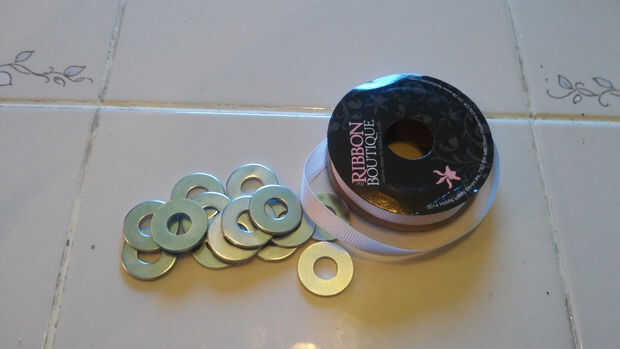Un collar simple con tres luces LED, arandelas, plástico, cintas e hilo conductor. El collar es una buena introducción a los circuitos.Materiales:Surtido arandelas (encontradas en el garaje)dos de la parte transparente de epoxycintabolsa blanca de pl