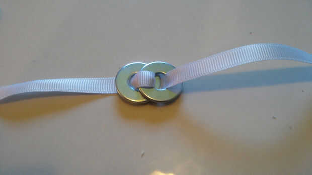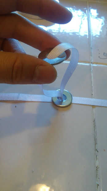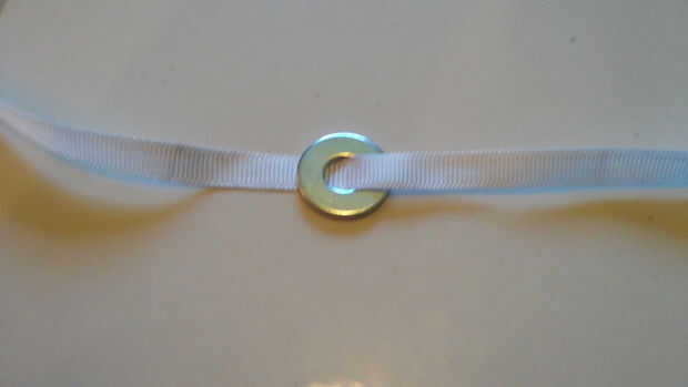 2. Tire de la cinta por la mitad de la segunda arandela.