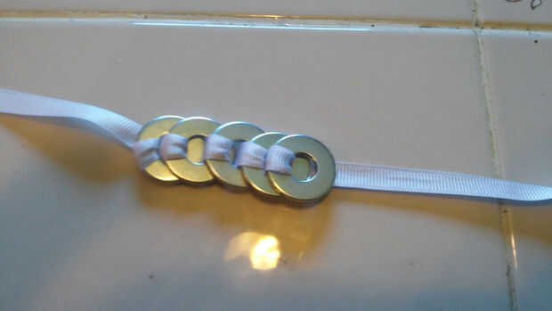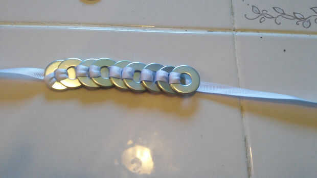 Una vez que se cortó la cinta pude empezar a tejer las arandelas para el collar.