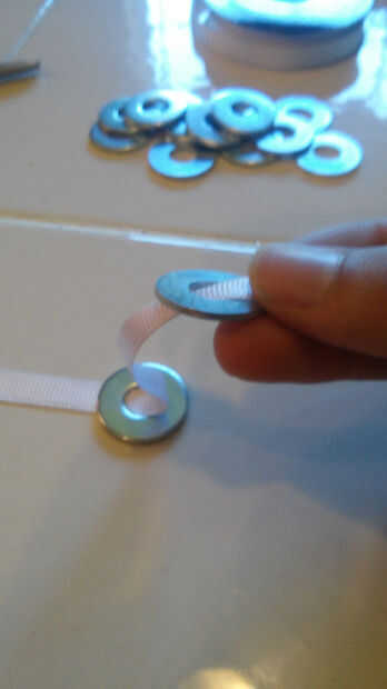 3. Tire del hilo hacia atrás a través del centro de la primera lavadora.