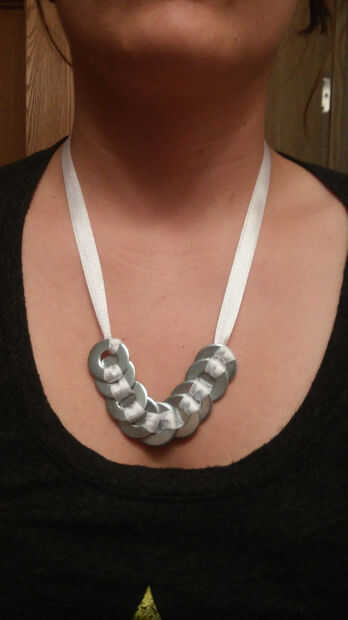 Me gusta cómo resultó el collar. Ya estoy queriendo hacer otro con arandelas más que hacer más de un collar de declaración. La única pega es que con todas las arandelas llega a ser un poco pesado, pero todavía tiene una gran mirada.