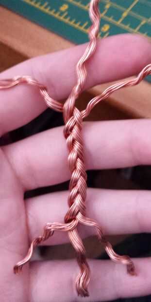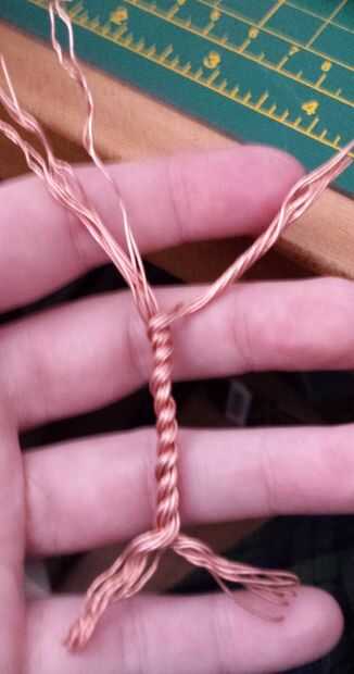 una vez que lo tienes torcido juntos cortar el lazo y un giro en los extremos un poco para empezar las ramas y luego reservamos esta pieza