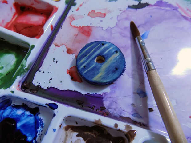 Pegue el botón en el pedazo de globo y colocar la hélice.