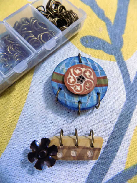 Añadir anillas a todos los agujeros y pedazos de cadena los dos juntos.