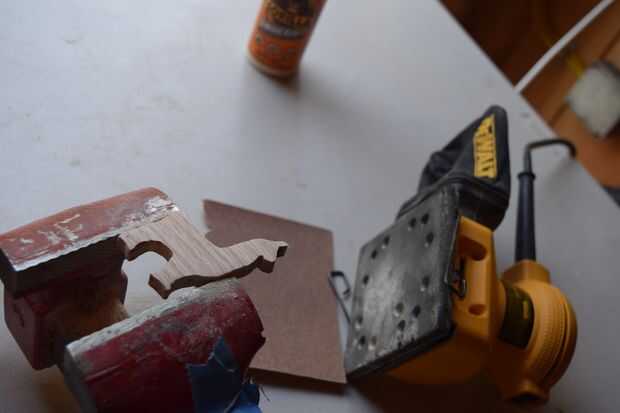 • A partir de ahí empezar a lijar, (esto es cuando cambié a mi lijadora de Palma) ya que la pendiente era tan pequeña no quería utilizar lija de grano bajo. Empecé lijando con grano 100 hasta que es liso, en la cara y los lados de la pendiente. Entonces me trasladé a 150 para hacerla más suave, así como alrededor de los bordes.