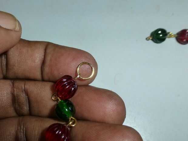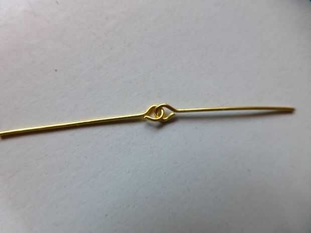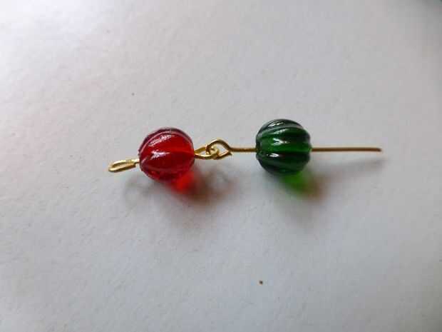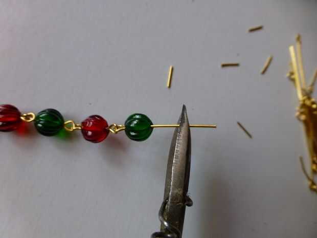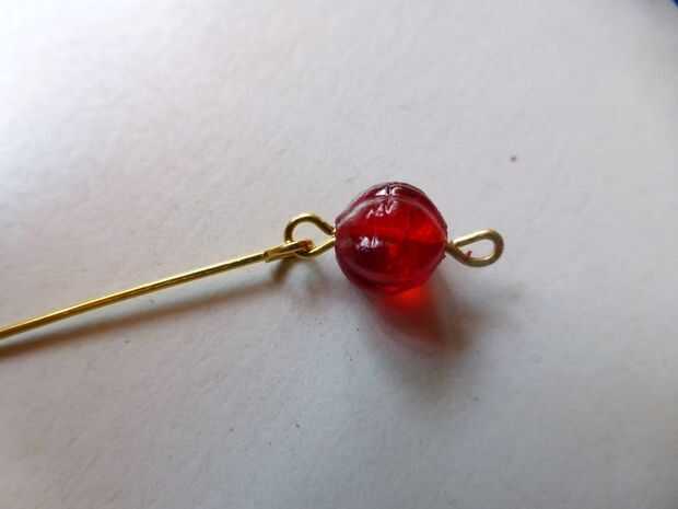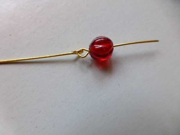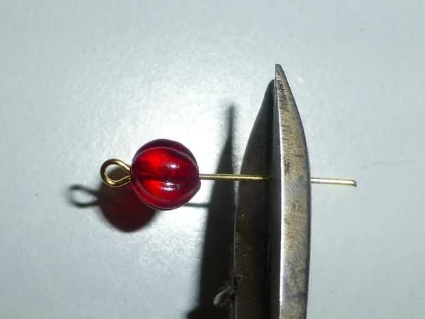• Con los alicates redondos de la nariz, hacer un ojo en el extremo cortado del perno, cierre el grano rojo