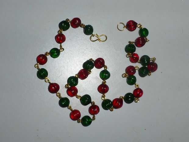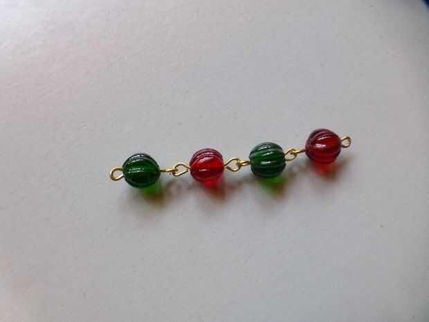 • Continúe este proceso con alternancia de 18 piezas rojos y 18 piezas de cuentas verdes.
