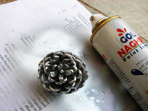 Pintar el cono con aerosol plata. Para mejor resultado hacer no aplausos al cono en su tiempo de la pintura. Esperar 2 horas hasta su cono seco. Si te gusta dar velocidad de secado, puede utilizar un ventilador. Pueden disminuir el secado a 15 minutos o menos.