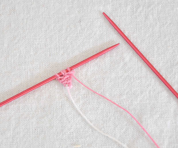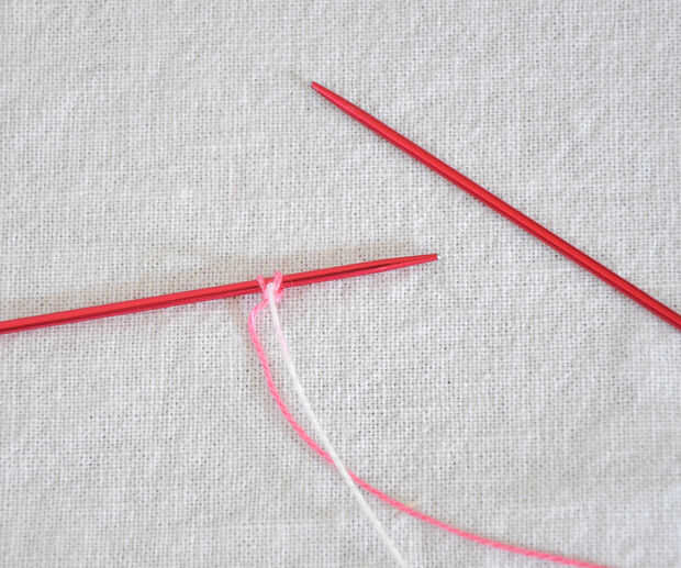 Hagamos que este collar comenzó! Para comenzar, solo tienes tus dos doble agujas puntiagudas.