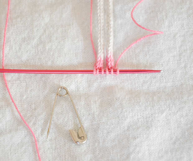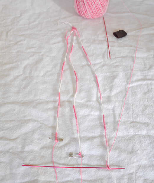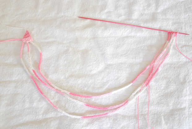 Antes de que usted puede hacer punto, usted necesita conseguir en la aguja. Asegúrese de que es mantenerlos en el mismo orden o el collar se torció. Ponerlos de uno en uno y tratar de organizarlos para que el subproceso de trabajo está colgando de un extremo. Hará más fácil empezar a tejer otra vez.