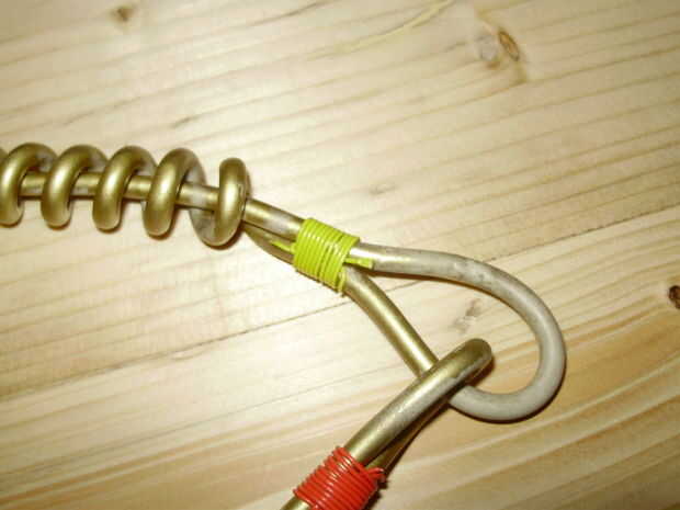Ahora el otro extremo del cable recto a través del lazo del hilo de rosca y meter en el cable rizado para hacer un segundo ciclo vinculado en el primer lazo. Garantizar como antes con azotes o lo que sea.