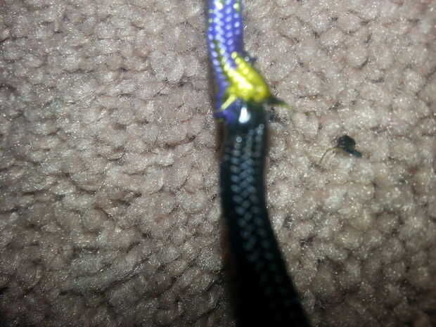 Tire alrededor de una pulgada o dos de la base del interior hacia fuera entonces cortarlo. Meter el otro color en uno al otro y luego quemarlos juntos.