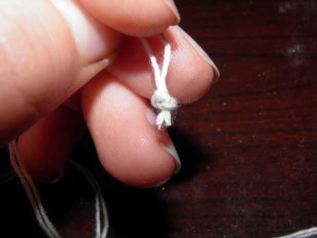 Después de cortaron la cadena extra y atar otro nudo grande.