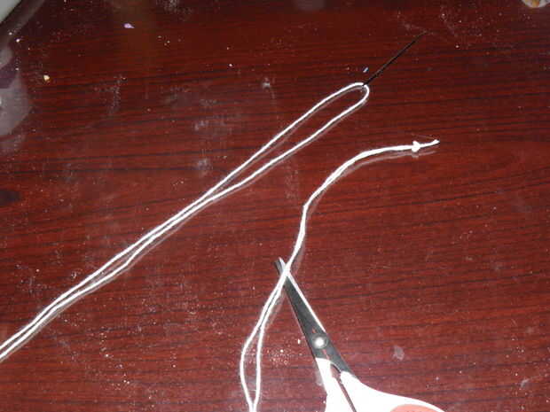 Ahora toma un grueso mecate o lana y atar a cada extremo, durante la medición para asegurarse de que cabe la cabeza de quien está destinado para.