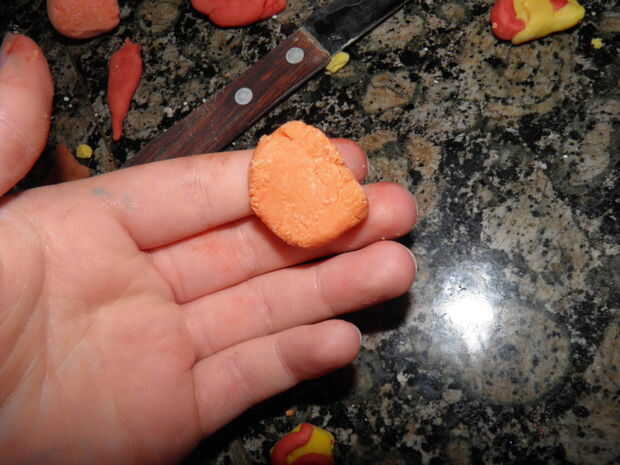 Entonces para la arcilla del color, sólo rompe la cantidad o la arcilla que necesita y deje caer algún colorante en él y luego amasarla hasta que el color se mezcla.