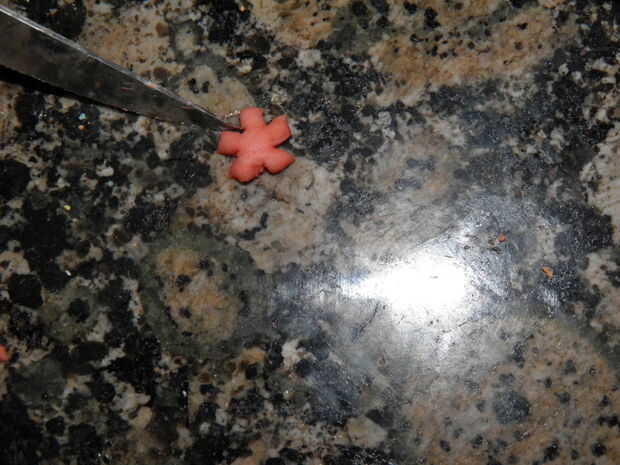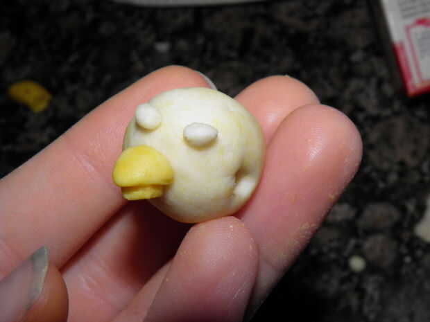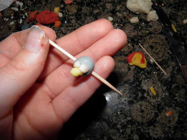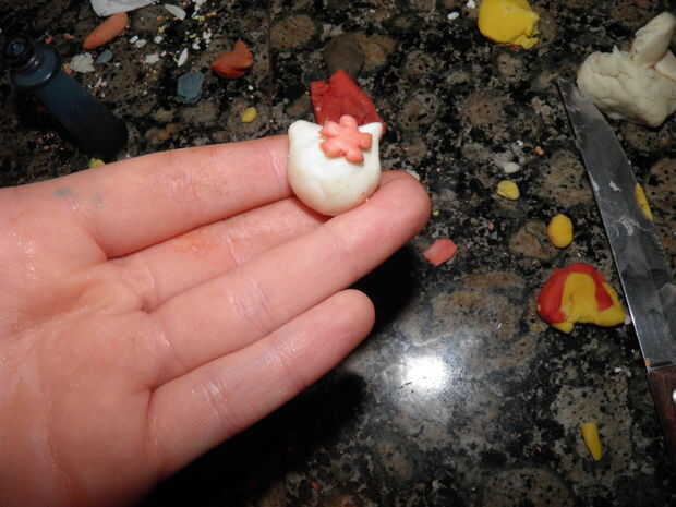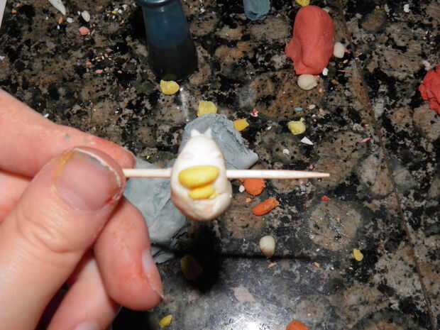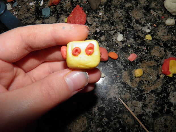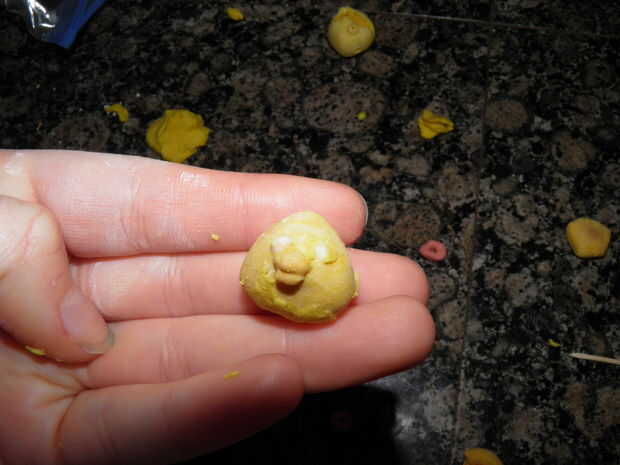 Usando un palillo de dientes, hágale un agujero a través de cada personaje (para la cadena) y hacer un agujero grande.