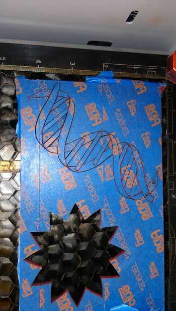 Para reducir al mínimo el abrasador que puede ocurrir cuando el corte y el grabado me gusta cubrir mis piezas con cinta de pintor antes de ejecutar a través del cortador del laser. Ver imagen #1.