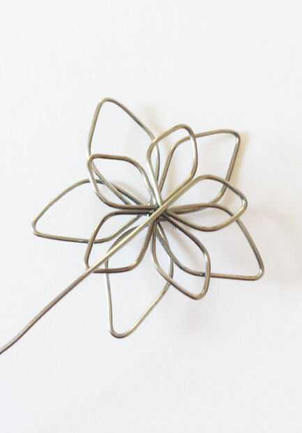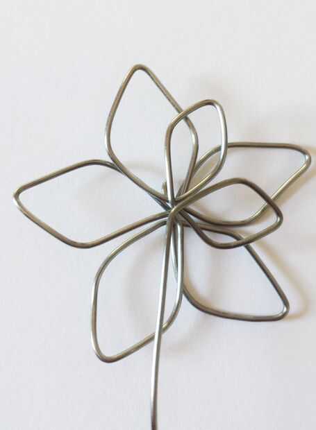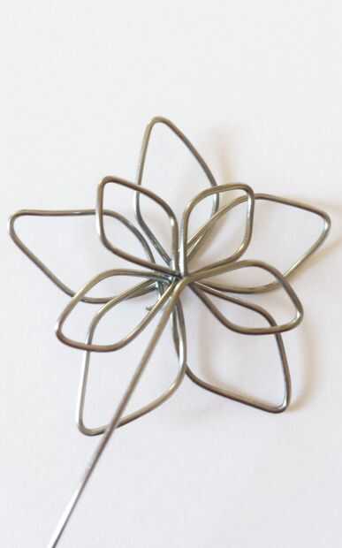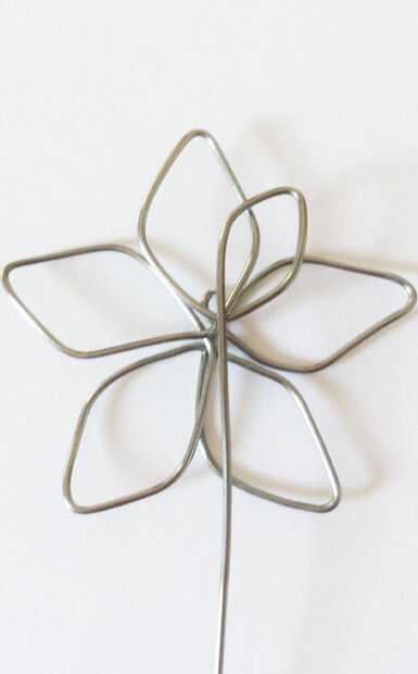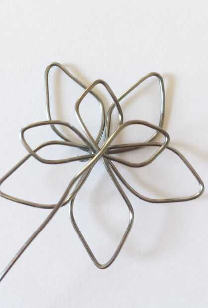 Hacer una curva en la punta de tu pétalo final diamante, pero que esta curva para que el alambre se coloca entre dos pétalos. Forma el cable en un pétalo de diamante más pequeño entre los dos grandes pétalos detrás (ver primera imagen de lo que quiero decir). Siga sus pétalos alrededor como antes, asegurándose de que los pétalos se encuentran entre dos los grandes detrás.