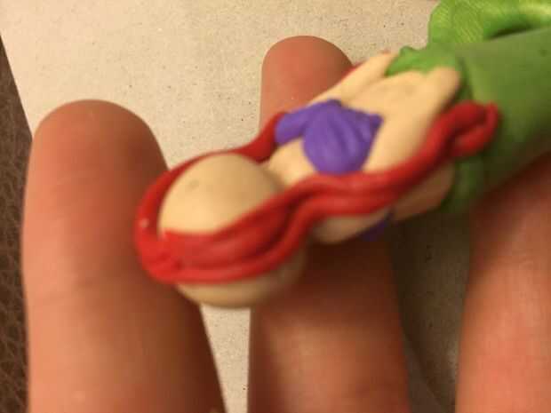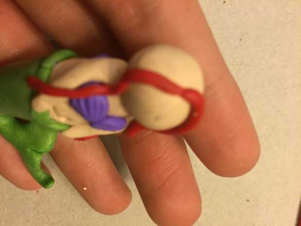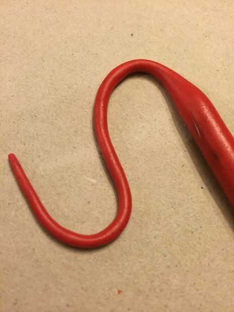 Hacer una serpiente con el rojo y hacer piezas para el cabello y en
