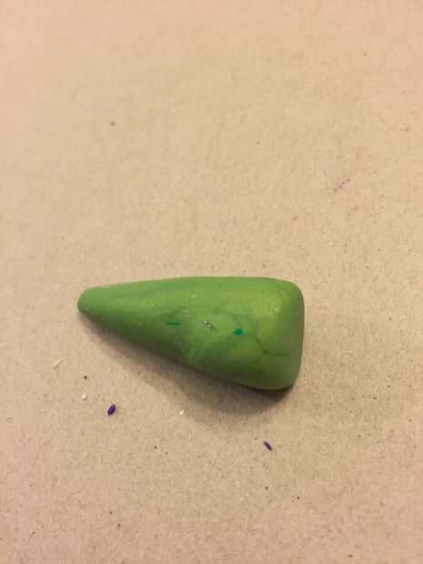 La bola de arcilla verde y cortar un pequeño pedazo de (fin) y con el resto del espacio con PIC