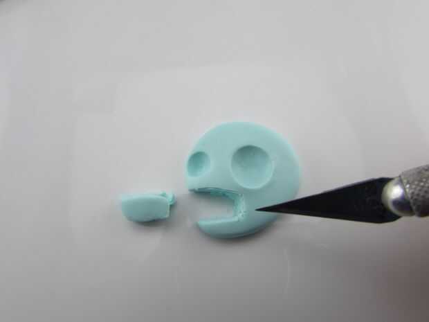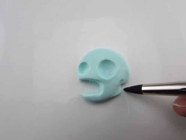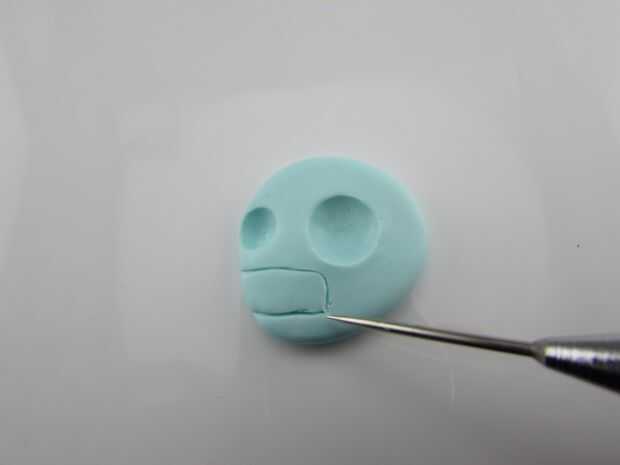 Para acentuar su mandíbula y parte posterior de su cráneo, hacer algunas muescas con su Modelador de arcilla.