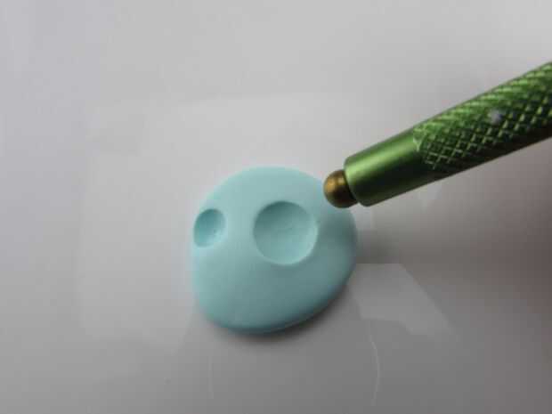 Usando una aguja de bola, hacer dos depresiones para los zócalos del ojo.
