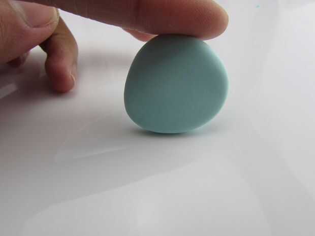 Hacer una forma ovalada y aplanar con los dedos. (Estoy usando Fimo Soft color de menta)