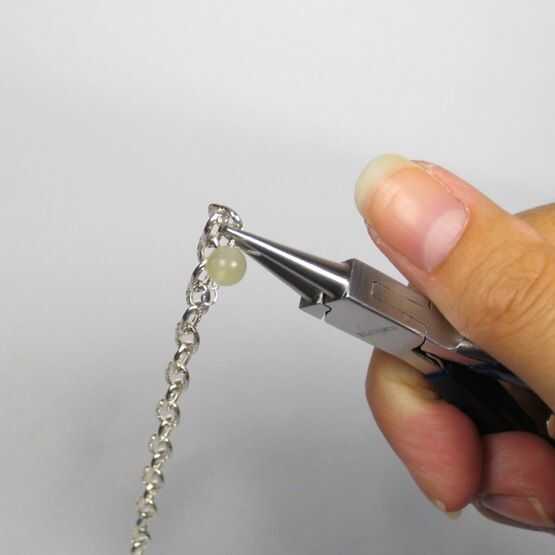 Ahora a cortar su cadena de cualquier longitud que desee y seguir haciendo enlaces añadiendo cualquier grano o cadena que te gusta.